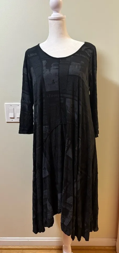 Comfy USA Zoey newsprint tunic dress black sz XS S artsy unique - $42 - From Anna