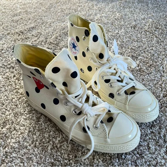 PRODUCT DETAILS Rubber toe cap High-top silhouette Lace-up closure Polka dot print Cotton canvas upp... Show more