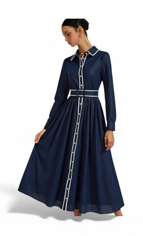 See pictures for measurements Belt included A size XS will fit someone who typically wears a US 2/ UK 6 / EU 34 Bust: 32.3'-33.9' Waist: 24.4'-26' Hips: 34.3'-35.8' Composition: 80% Polyester, 20% Cotton Thickness: Regular Material: Woven Fabric Sleeve Length: Long Sleeve Neckline: Polo Clothing Detail: Belted Size & Fit Dresses Length: Maxi Stretch: Non-stretch Fit Type: Regular Fit
