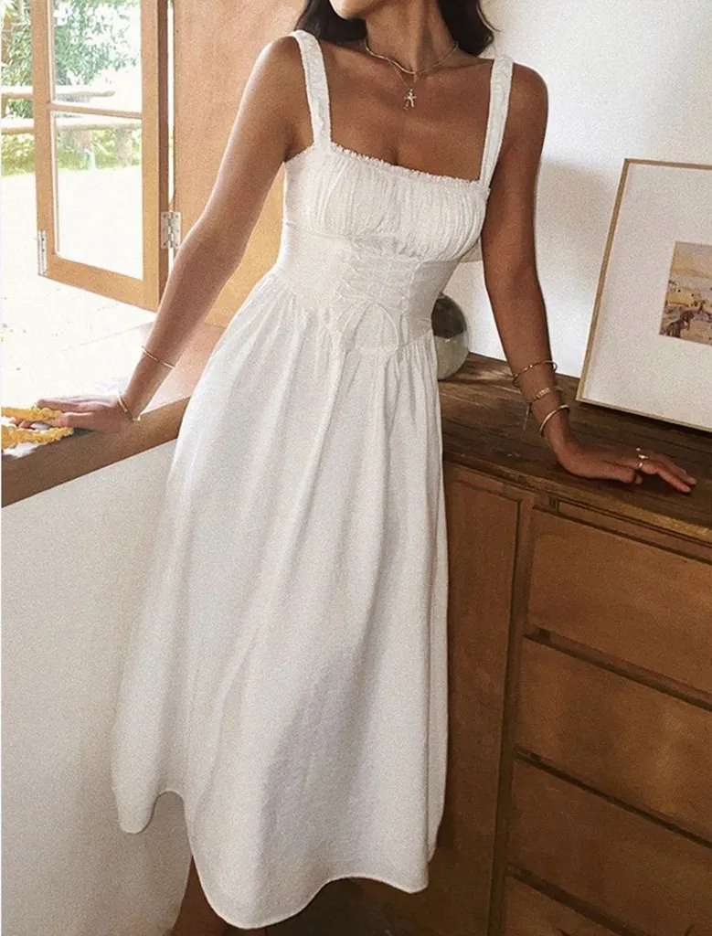 Commense Corset Midi Dress Coastal Cowgirl Milkmaid Cottage White Size Small - $60 - From Elisa