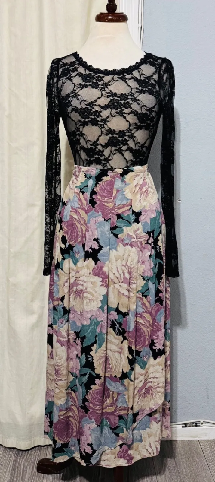 A vintage COMPONIX maxi skirt showcasing a bold floral print. This skirt features a wrap-style silho... Show more