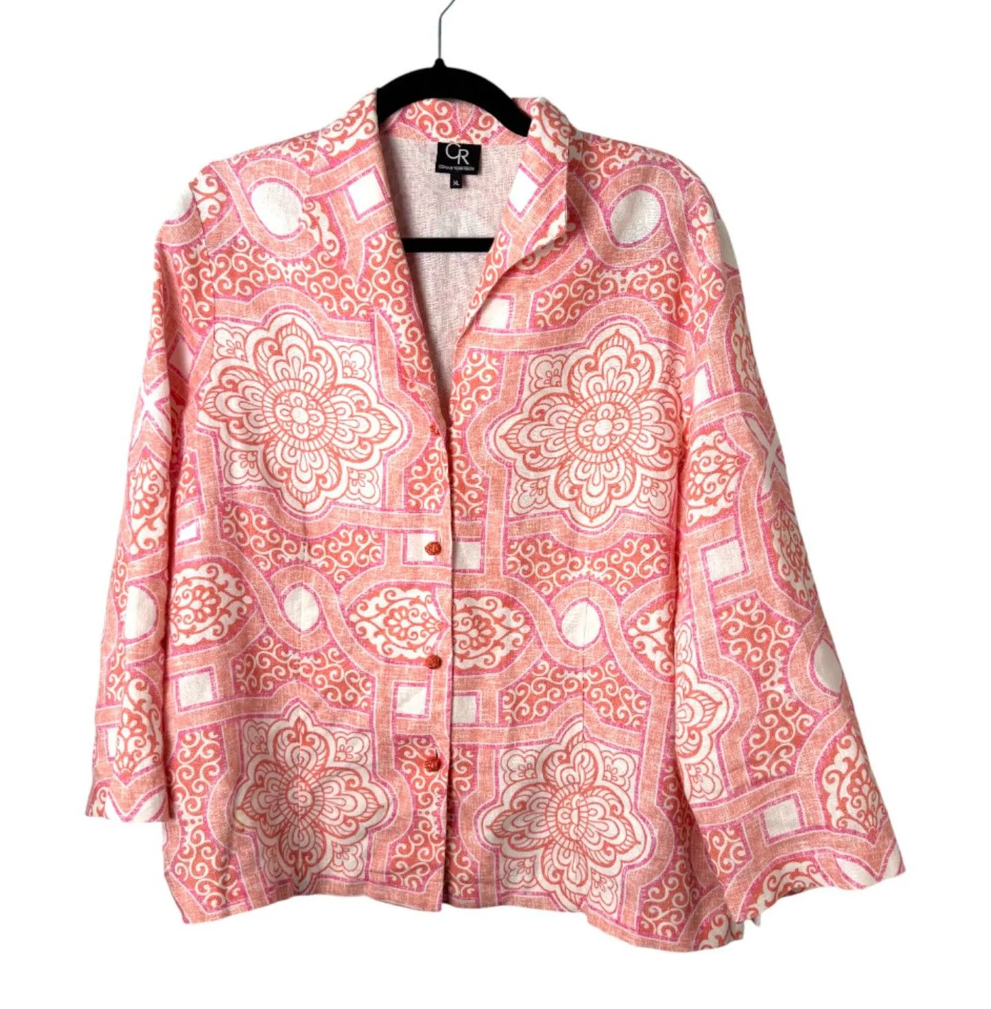 Size: XL Style: floral boho bohemian quirky western casual professional work office classy classic feminine button coastal grandma resort cruise vacation bright bold colorful Long sleeve Measurements: Pit to pit: 22 inches Sleeve: 24 inches Length: 25.5 inches All measurements are approximate. To ensure a good fit, it is recommended that you compare these measurements with a similar piece that you own. Condition: Pre-owned, good used condition. See photos Always open to reasonable offers! Bundle for the best deals! FYI all items come from a non-smoking but pet friendly home. Super fast shipping: We ship items within 48 hours of purchase!