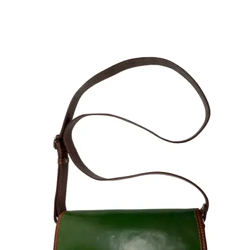 Timeless Italian craftsmanship in a rich green and brown leather crossbody by Conte Di Cavour. Made in Italy from genuine vegetable-tanned leather, this structured satchel features multiple compartments, contrast stitching, and a long adjustable strap for comfortable everyday wear. A beautiful artisan piece with natural leather character and a classic, elevated silhouette. Condition: • Very good pre-owned condition • Natural leather color variations and patina throughout • Dye marks inside pockets (see photos) • No structural issues, leather is supple and beautiful Details: • Brand: Conte Di Cavour • Made In: Italy • Material: Genuine Italian vegetable-tanned leather • Color: Green with brown trim • Style: Crossbody / satchel / messenger • Closure: Flap with buckle straps • Interior: Multi-compartment with zip pocket and organizer sections Measurements: • Length: 10" • Height: 7" • Width: 3" • Strap Drop: 23" italian leather bag, conte di cavour, leather crossbody, green leather bag, italian satchel, leather messenger bag, artisan leather, vegetable tanned leather, boho bag, vintage style bag, classic crossbody, everyday bag, made in italy purse, structured leather bag