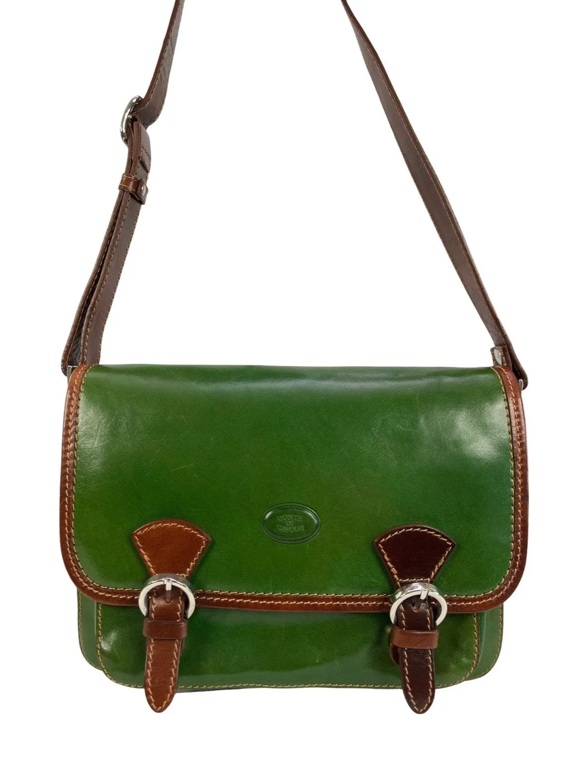 Timeless Italian craftsmanship in a rich green and brown leather crossbody by Conte Di Cavour. Made... Show more