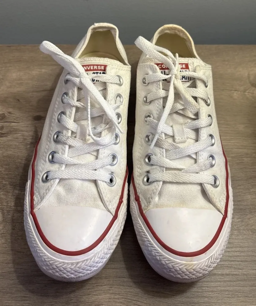The Converse Chuck Taylor All Star Shoes in size M6 W8 White Low Top Canvas Sneakers are classic uni... Show more