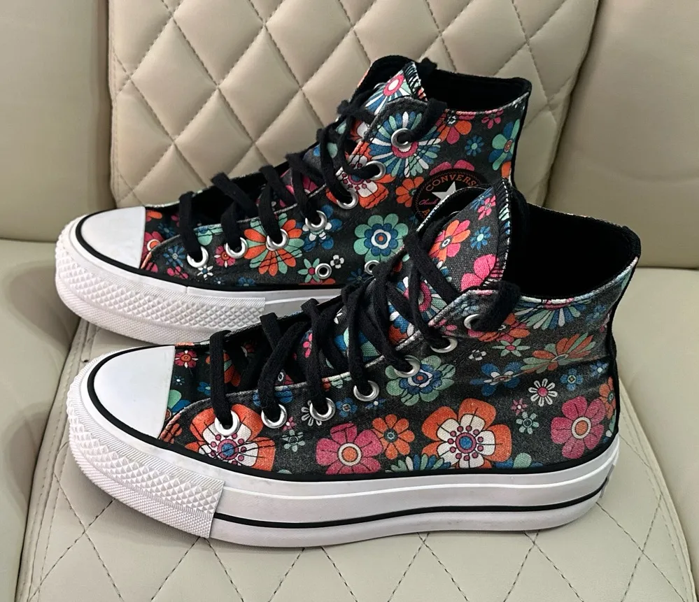 Converse Chuck Taylor black floral y2k All Star Hi Lift Platform shoes size 5.5 - $50 - From Melissa