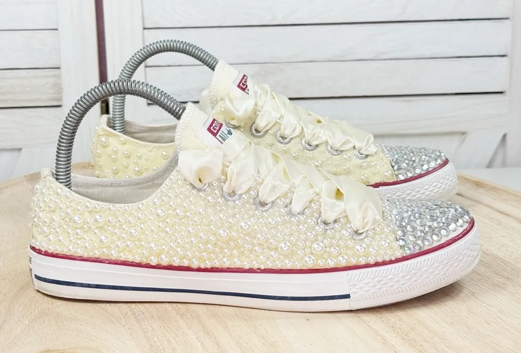 Converse Chuck Taylor Pearls Rhinestone Low Top Sneakers Ivory Size 7.5 Ivory coated canvas upper... Show more