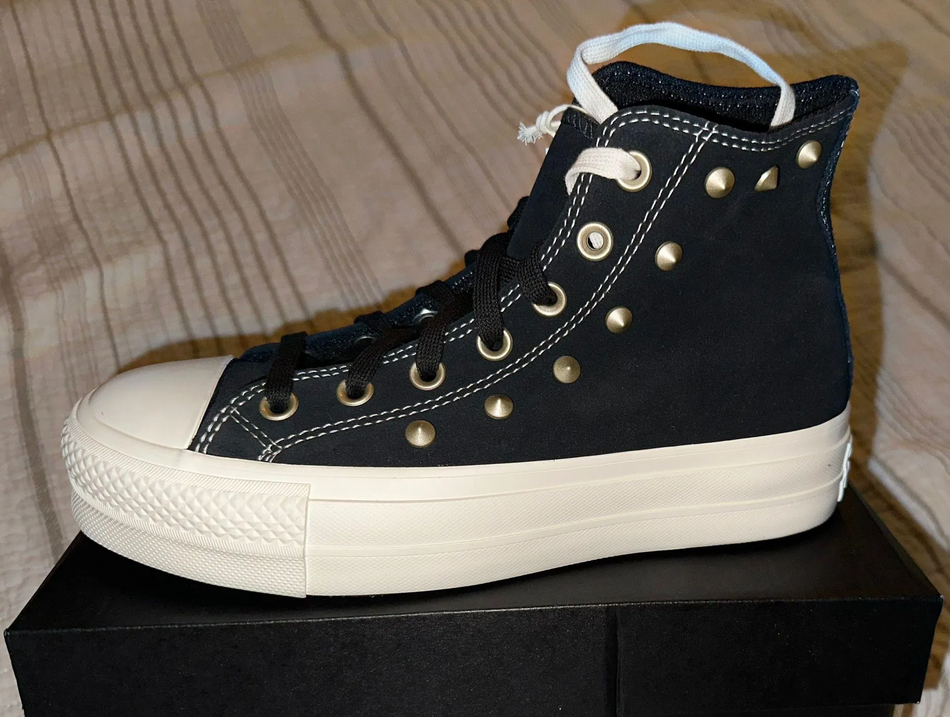 Brand New in box Women's Converse Chuck Taylor All Star Lift Platform Suede Studs High Top Style #:... Show more