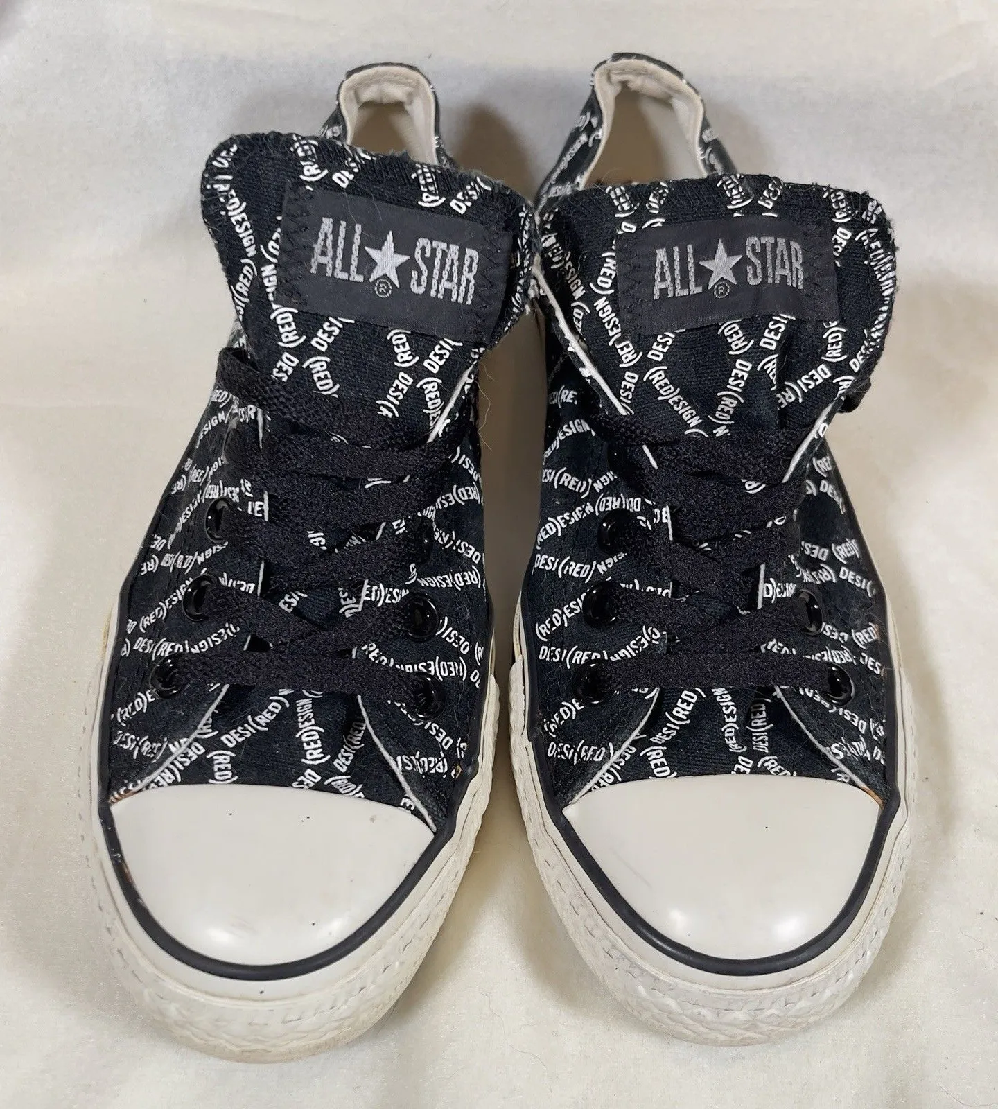 Unisex Converse All Star Project Red low top sneaker. Black with white lettering and white sidewalls... Show more