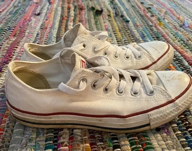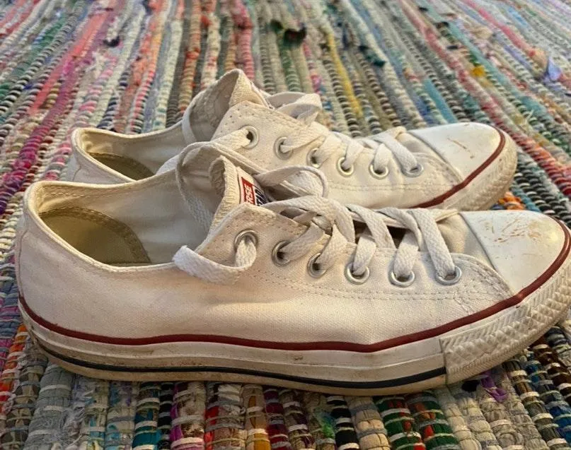 White low tops, been worn a lot still in good use and bleach will take out the stains!