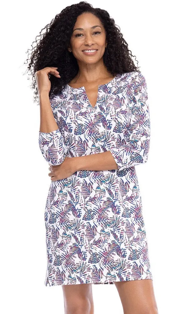 Coolibar | Oceanside UPF 50+ Tunic 3/4 Sleeve Dress in Magnolia Pink Beach Leaves - Style No. 01401... Show more