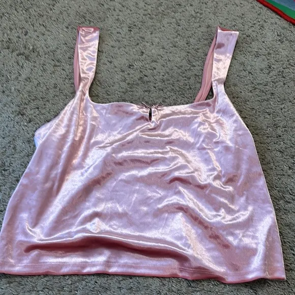 NWOT, no flaws, smoke-free Light pink velvet tank top, cropped length, little bow in the middle Wome... Show more