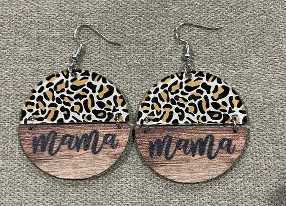 COPY - Wooden and Acrylic Circular Animal Print and Brown Earrings reading Mama - $14 New With Tags - From Laura