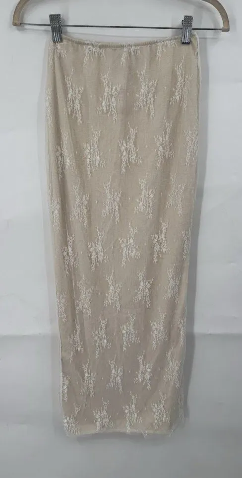 Great pre owned condition. Lace outer with an inner lining. Has lots of stretch. Size small. All measurements are approximate : 24 inch waist. 36 inch length from wait to bottom hem. CC8