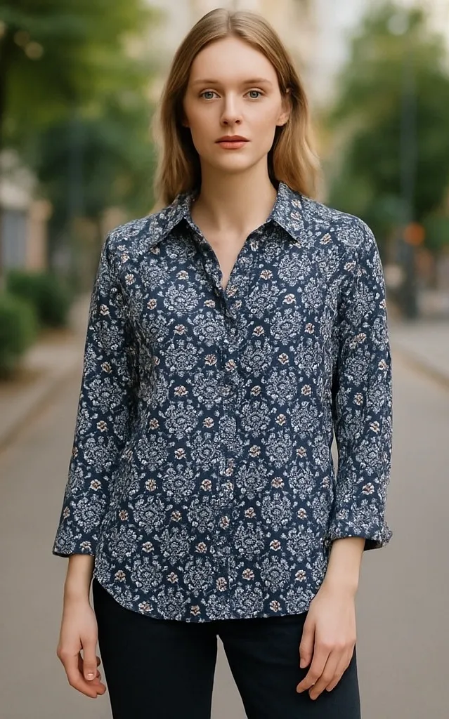 Elevated style meets everyday comfort in this sophisticated button-down shirt. A captivating floral print dances across the fabric, offering a touch of timeless elegance. The classic collar and button-down design provide a polished look, while the 3/4 sleeves add a relaxed, versatile feel. This shirt effortlessly transitions from casual outings to more refined settings, making it a perfect choice for brunch with friends, a relaxed office environment, or a weekend getaway. Color: Blue Type: Button-Up Department: Women Style: Tunic Material: Linen Blend, Linen, Rayon Neckline: Collared Sleeve Length: 3/4 Sleeve Sleeve Type: Classic/Fitted Sleeve Accents: Button Pattern: Floral Features: Breathable, Lightweight, Relaxed Fit, 3/4 Sleeves, Collared Character: Bohemian Fit: Relaxed Keywords: Coral Bay, Button Down Shirt, Floral Print, 3/4 Sleeve, Linen Blend, Womens Top, Blouse, Casual Shirt, Bohemian, Relaxed Fit, XL, Work Wear, Office Attire