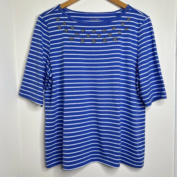 Coral Bay Nautical Theme Shirt Top Blue White Stripes Women’s Size XL - $15 - From Melanie