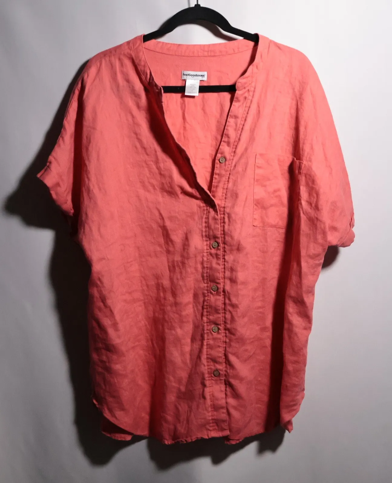 Measurements: • Chest across: 25.5 inches • Length: 28.5 inches Keywords: FeelGoodstore shirt, XL linen top, women's coral blouse, short sleeve linen shirt, button up linen top, breathable linen shirt, summer linen blouse, casual linen shirt, plus size linen, oversized linen shirt, resort wear, casual Please see photos for details. Offers welcome!
