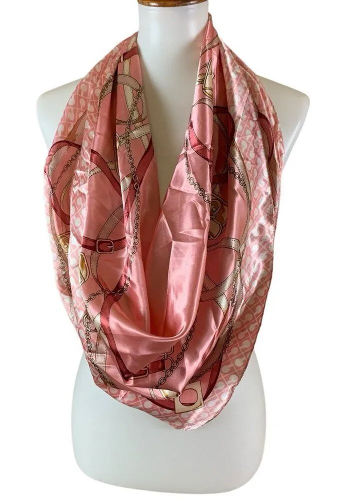 Corciova Pink Satin Silk Feel‎ Square Scarf Chain Belt Equestrian Print 35x35 - $18 - From Rodica