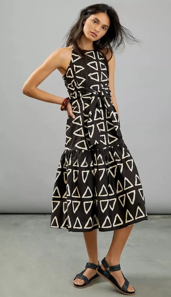corey lynn calter dress Keyanna Maxi Tie Drop Waist Abstract Art Lagenlook Boho‎ Black Size M - $63 - From Adeline
