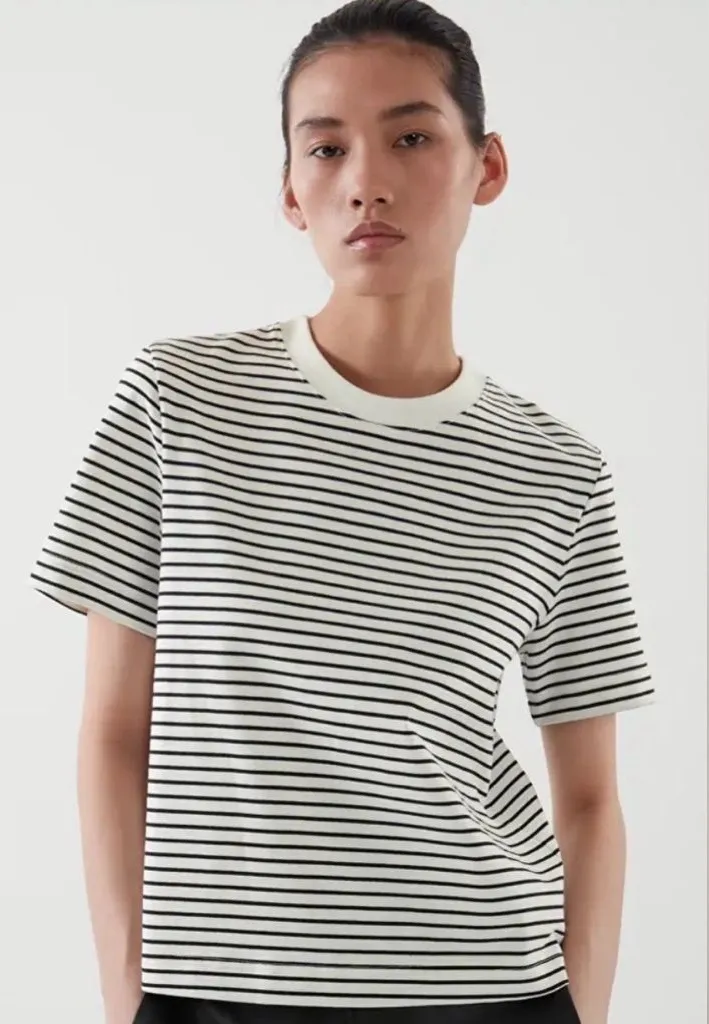 Timeless stripes, the COS way. - Twin stitch sleeve detail - Ribbed neck - 100% Cotton / Machine w... Show more