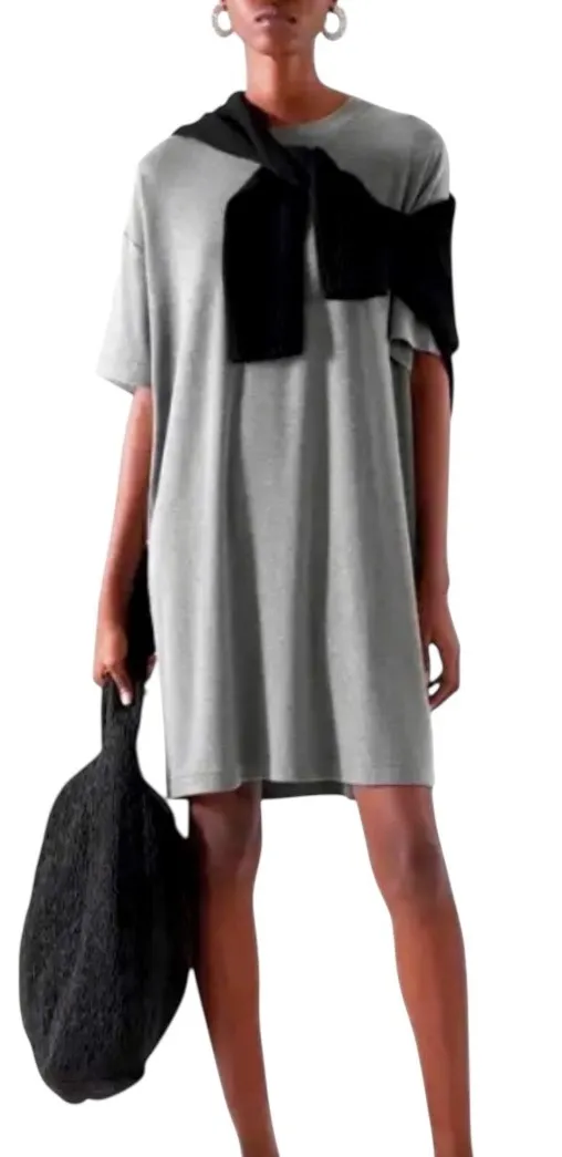 Effortless chic defines this versatile gray T-shirt dress. This piece offers a relaxed fit and a min... Show more
