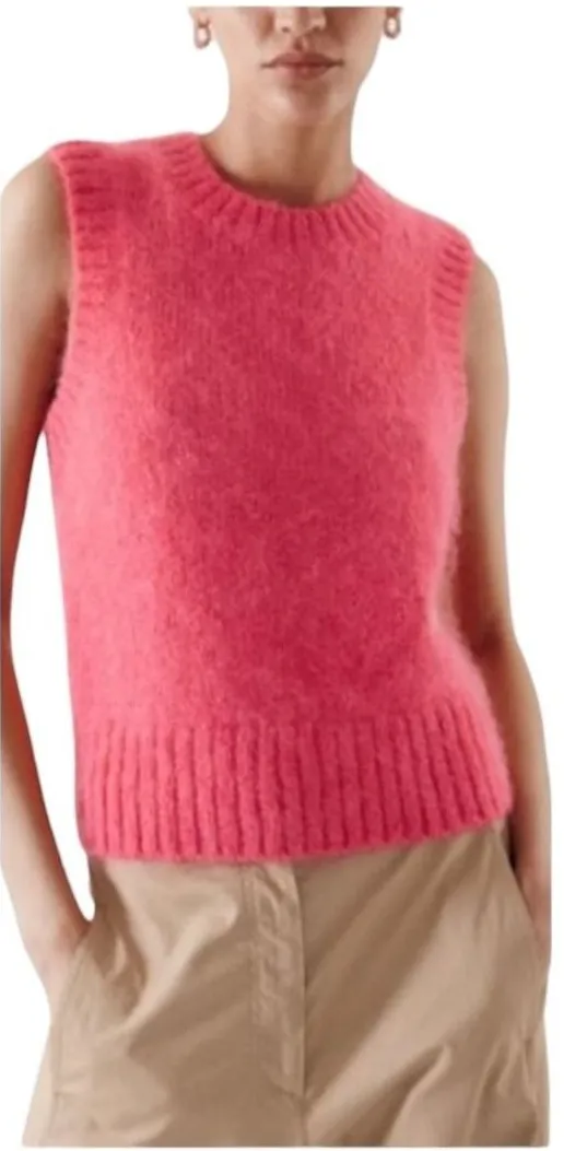 Pre-owned. No flaws .Smoke free home. Across chest 18.5'' Length 22'' COS women's pink fuzzy knit sleeveless sweater vest. This piece features a classic crew neckline and a ribbed hem. The fuzzy texture adds a unique tactile element to this versatile layering essential. As seen on the tv show Wednesday worn by Enid Sinclair. Type: Vest Outer Shell Material: Mohair Department: Women Fabric Type: Knit Pattern: Solid Insulation Material: Wool Season: Fall, Spring Occasion: Casual Sleeve Length: Sleeveless Keywords: COS, sweater vest, pink, fuzzy, knit, sleeveless, crew neck, layered, minimalist, modern, cozy, pullover, womenswear, vintage