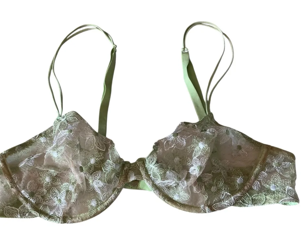 Cosabella full coverage lace bra mint green pink embroidered floral size 36C - $25 - From Aura