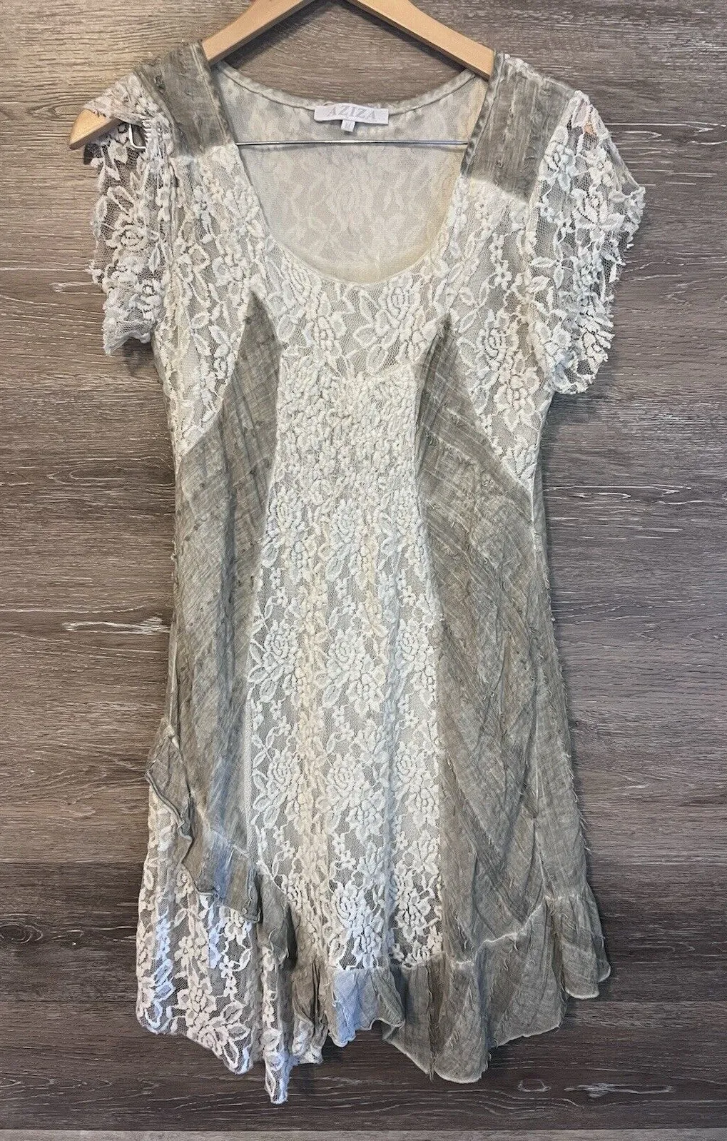 Cottagecore Aziza Dress Sz M Lace Boho Ivory Asymmetrical Mini Grunge Cotton Size M - $35 - From Luciana