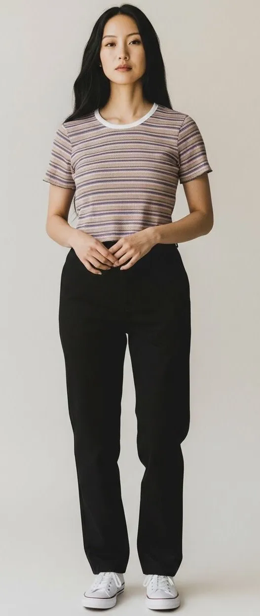 New with tags Cotton and spandex blend Colors may vary by device. Measurements: Approximate and taken while hanging. Pit to pit inches Length inches AI model may be used to illustrate possible fit and look. Pictures of the actual item immediately follow cotton emporium pastel striped top ribbed crop y2k 90s baby tee fitted short sleeve soft girl coquette cottagecore fairycore retro casual stretch knit crew neck summer spring festival layering grunge streetwear vintage inspired womens medium L1284