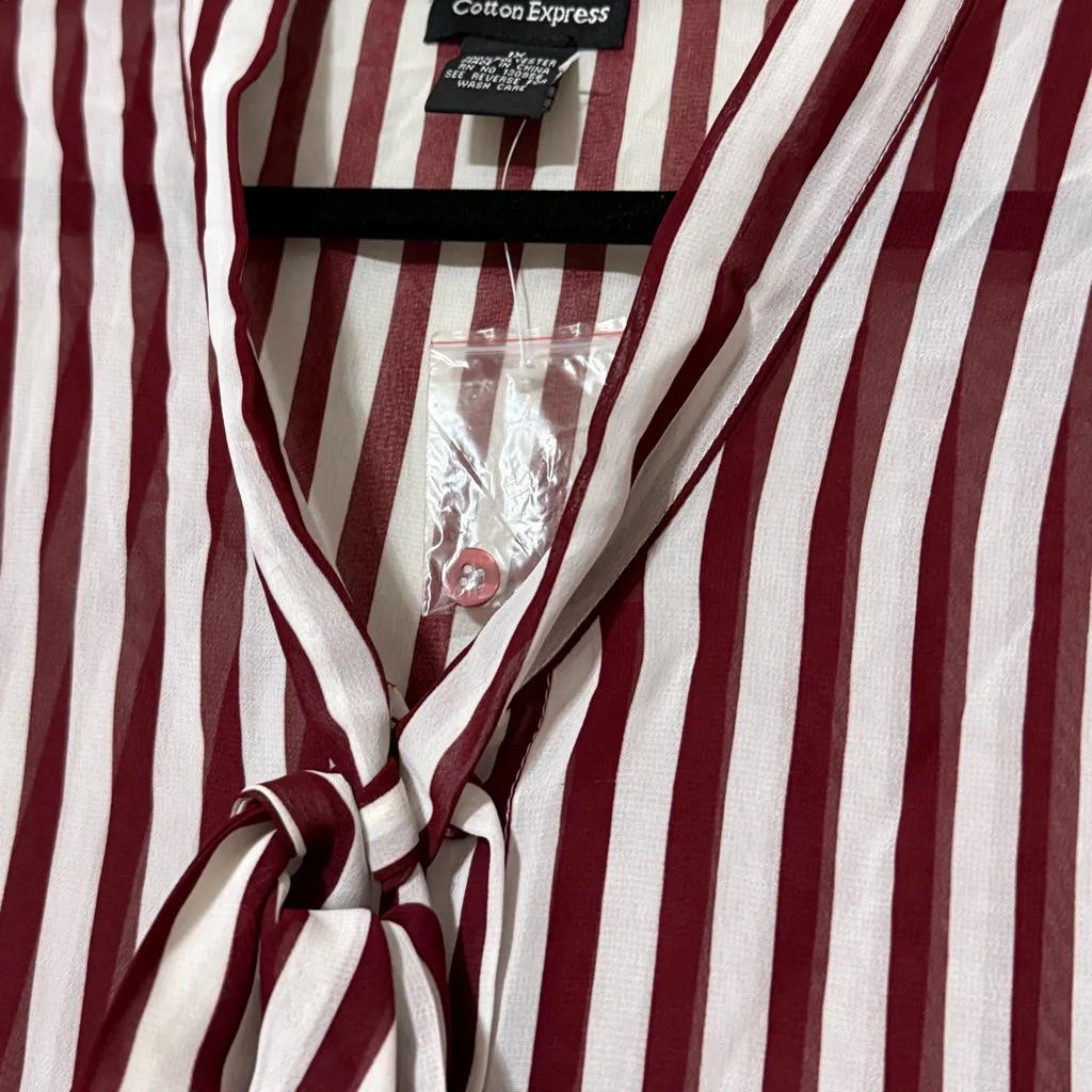 Cotton Express womens size 1X long sleeve striped sheer maroon ivory blouse NWT Purple - $22 - From Melissa