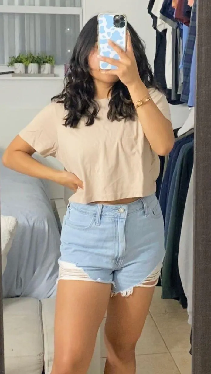 worn lightly. comfortable soft. no stain. no holes. minor pilling . height: 5’0 waist: 25” weigh:... Show more