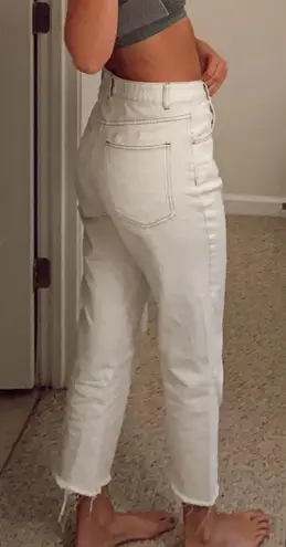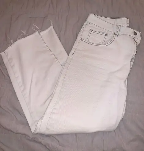 White cotton on flare jeans My favorite but just don’t fit anymore :’( Raw hem Black stitching Size... Show more