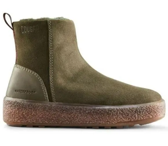 Cougar BRAND NEW Broom Boot SIZE 9 Rounded toe • Antique brass inside zipper • Genuine lambswool lining • Removable molded foam insole • Anti-slip, crepe finish thermo-plastic rubber (TPR) outsole • Always waterproof • Temperature rating -30C/-22F • Width: medium • Heel height: 1.75" • Shaft height: 4.5" • Shaft circumference: 11.5" • Fabric: waterproof suede/leather • Care: wipe clean with a damp cloth Retail is $200 *Please review all pictures of any markings from being on store rack and not in box.