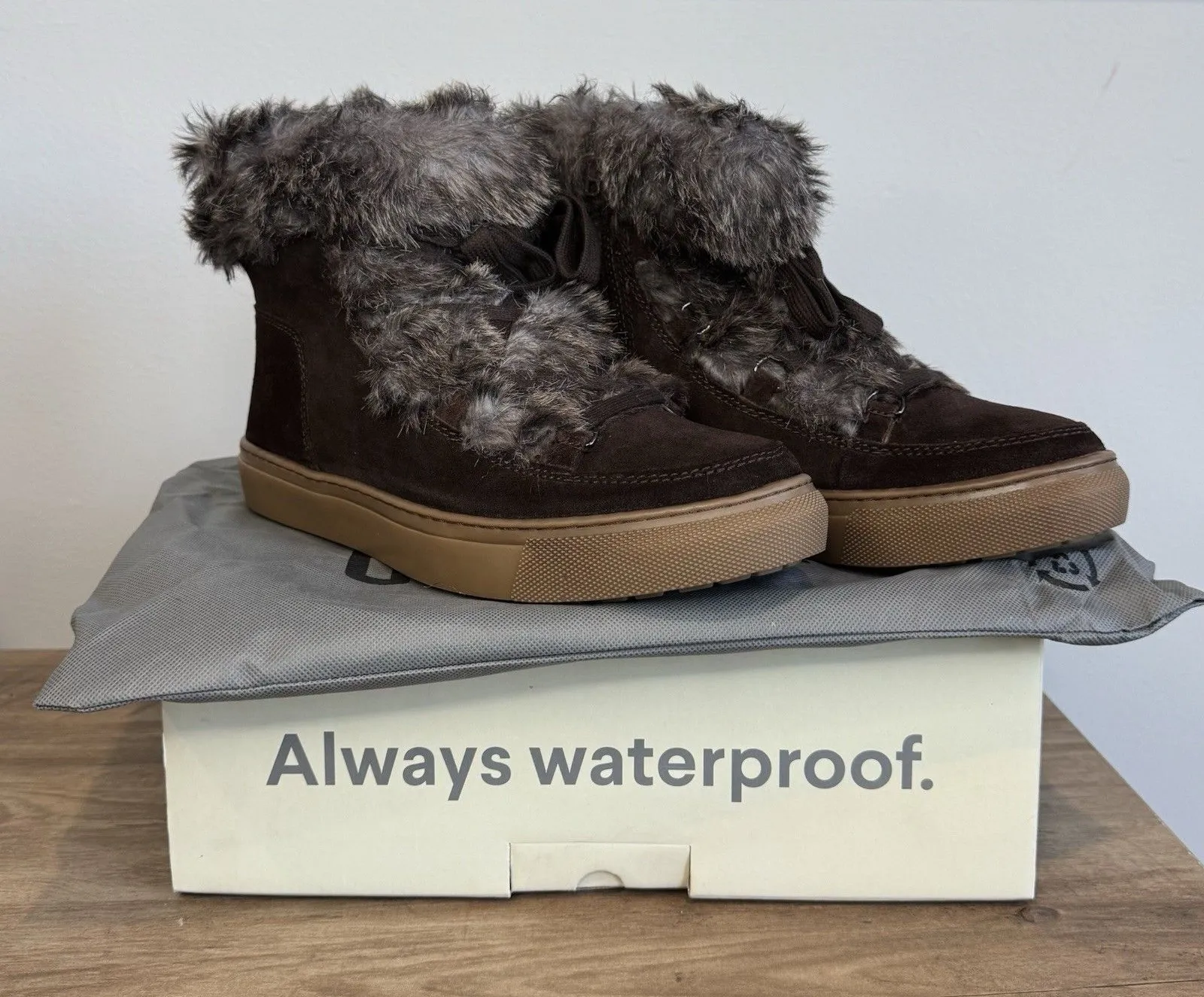Waterproof suede & faux fur upper Inside zipper closure Lace-up closure Round toe Winter pile li... Show more