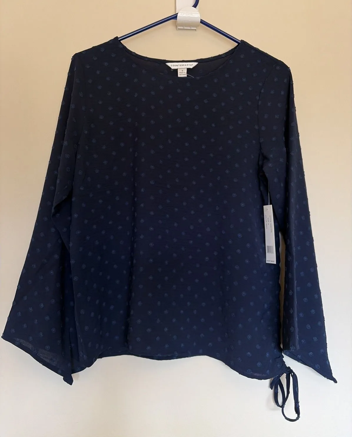 Counterparts Navy Blue Swiss Dot Long Sleeved Blouse Top Shirt Small NEW NWT - $23 New With Tags - From Hilary