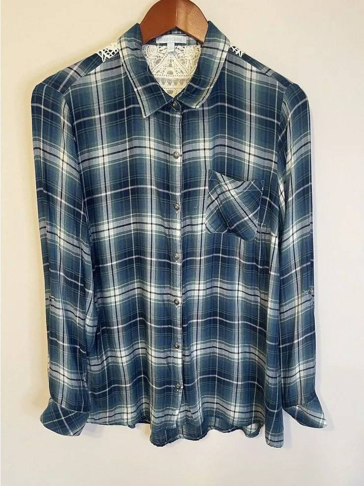 This shirt from Country Living is perfect for women who want to stay comfortable and chic. Made from a blend of Rayon and Cotton, it features an eye-catching blue-green Plaid pattern that is sure to make you stand out.