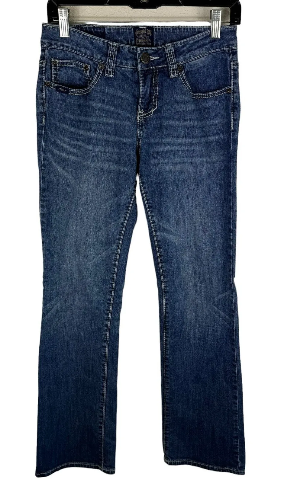 Excellent preowned condition. Medium wash low rise denim boot cut jeans. Zipper/button closure at waist. 5-pocket design. Rhinestone studding on back pockets. Cotton/spandex material. Approx. measurements: Waist 28", inseam 32", rise 8". Size 2. About Treasures4Bristol: *Smoke free/pet free home *Offers welcome! *New items added daily *Bundles welcome! Save on shipping! *Fast shipping *All items shipped in clear sealed bags within outer packaging to protect from moisture. *Please feel free to ask any questions you may have, I’m more than happy to answer! *A portion of every sale is donated to Bo’s Heavenly Clubhouse, an organization that supports families in Wisconsin who have lost a child. I lost my beautiful 4-year old daughter Bristol in October 2022. I started this business in honor of her!