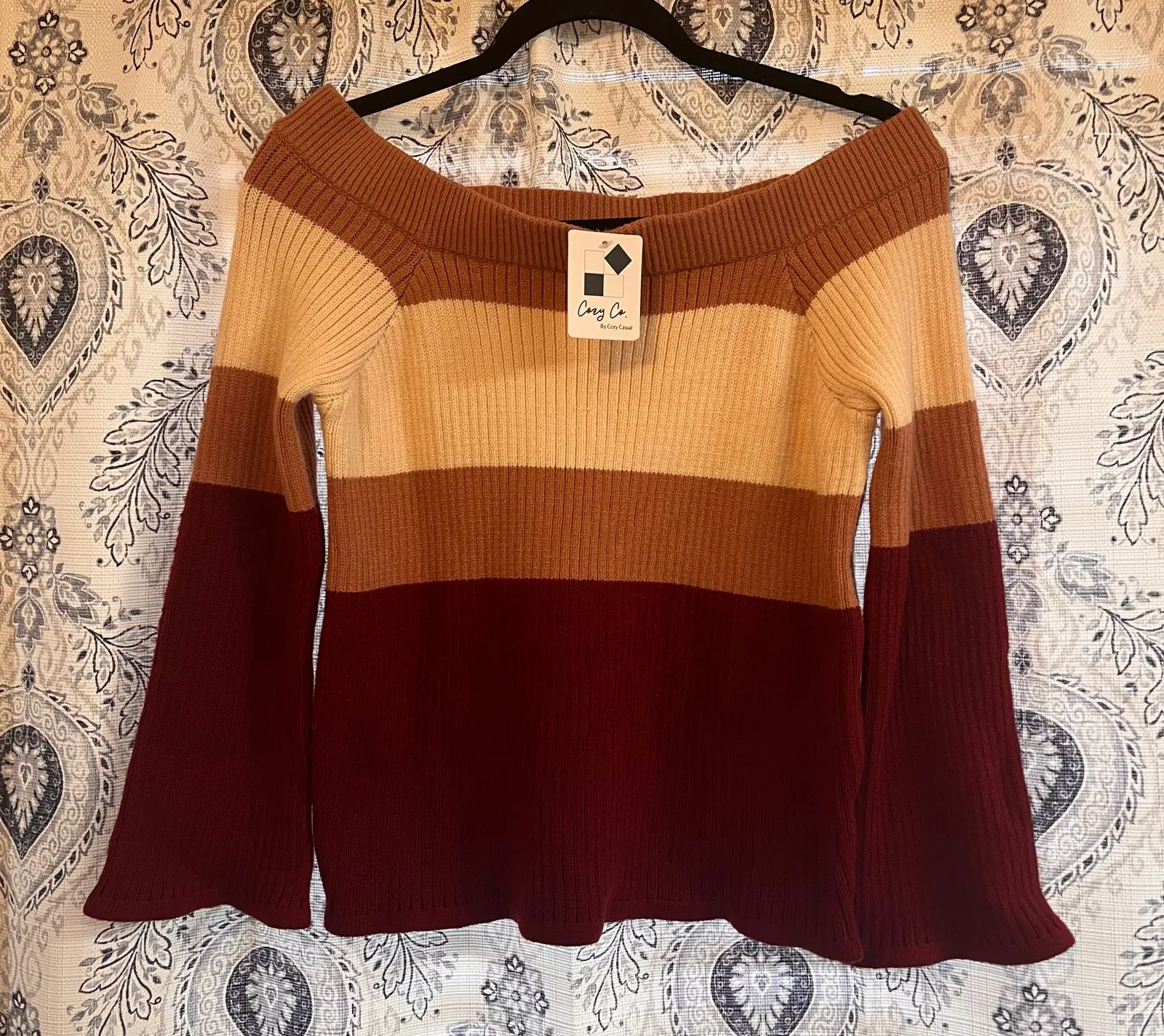 Cozy Co By Cozy Casual Mauve And Burgundy Stripe‎ Off Shoulder Sweater Size S/M Pink - $22 New With Tags - From Cassandra