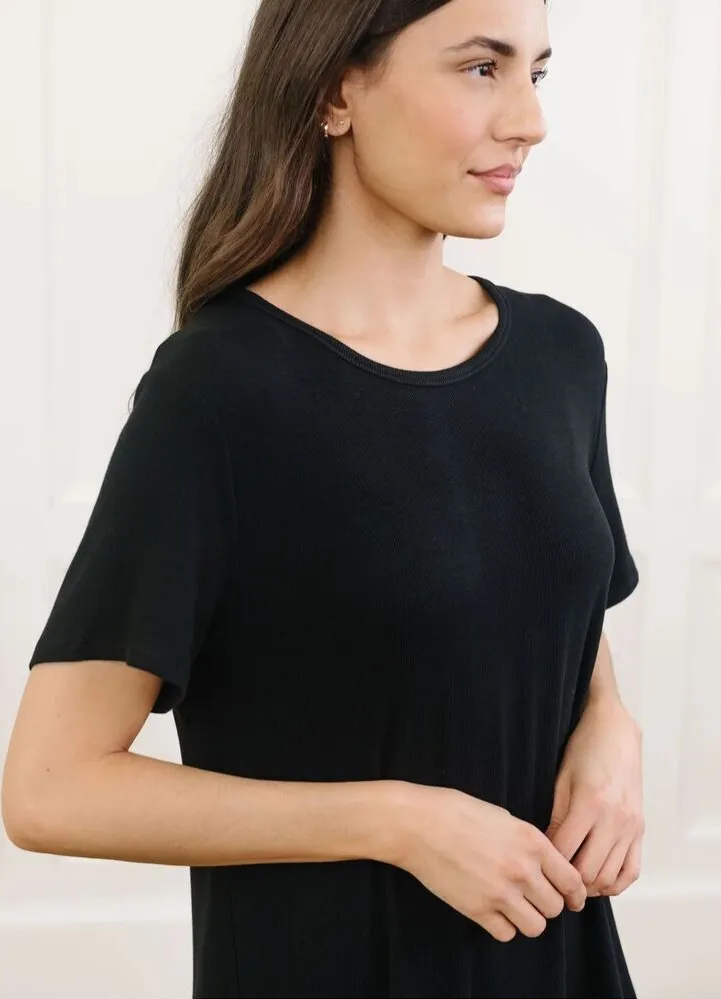 Cozy Earth Women’s Bamboo Rib-Knit Boyfriend Sleep Dress black medium - $50 - From Jeremy