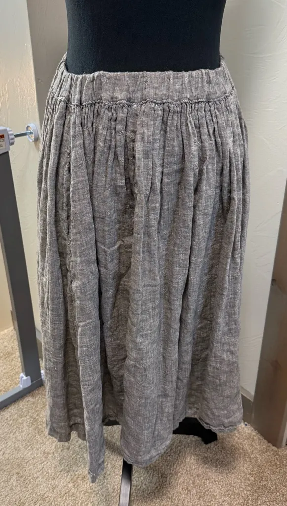 CP Shaded 100% Linen Midi Skirt Pull On Grey Elastic Waistband Embroider Detail Gray - $65 - From Abbey