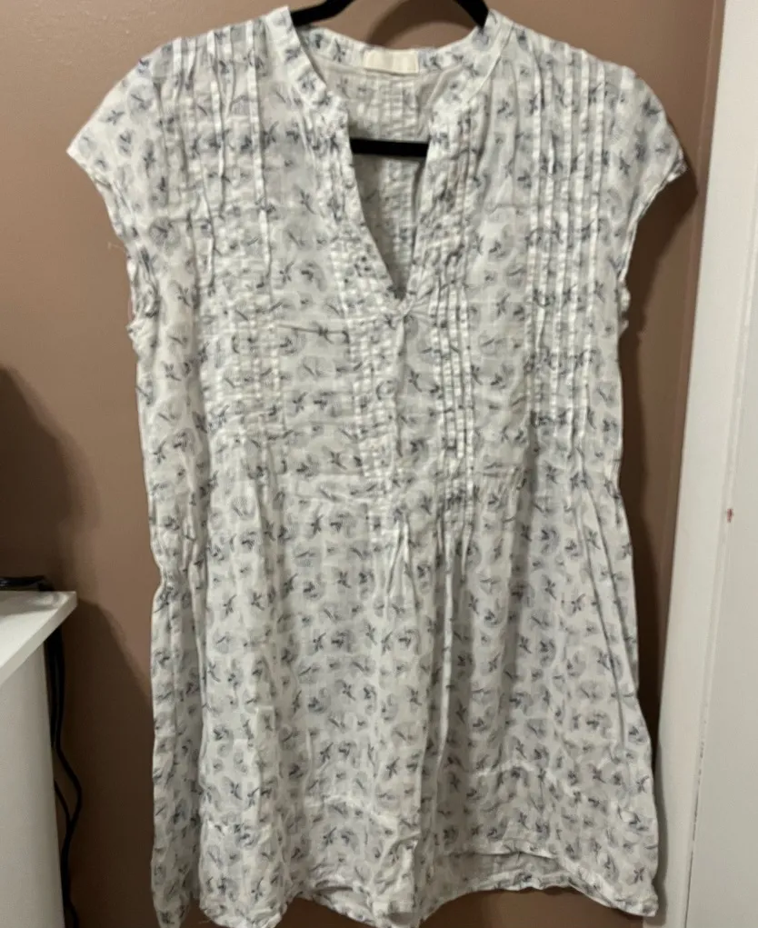 CP Shades White & Blue Floral 100% Cotton Cap Sleeve Lightweight Tunic Dress - $34 - From madison