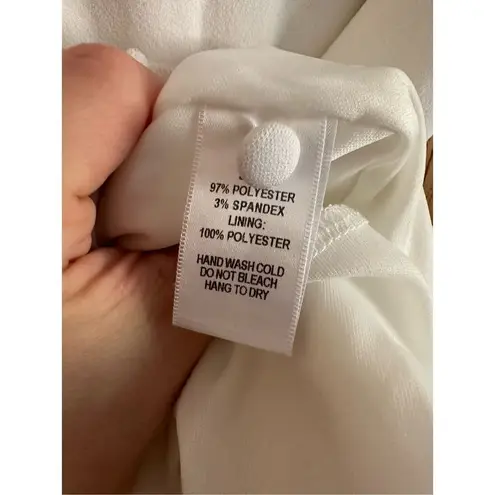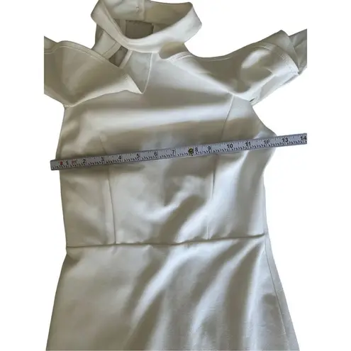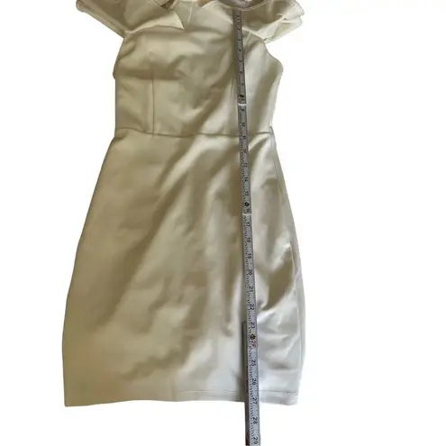 Lulus Your Time White Off-the-Shoulder Bodycon Dress sz XS “Lulus Exclusive! Now is the perfect time to debut a sleek new look in the Your Time White Off-the-Shoulder Bodycon Dress! Medium-weight, stretch-knit, falls from a high, halter neckline (with back button) into ruffled, off-the-shoulder sleeves and a princess-seamed bodice. Fitted waist and figure-flaunting bodycon skirt. Open back and hidden zipper. Fully lined. Self: 97% Polyester, 3% Spandex. Lining: 100% Polyester” In good preowned condition with a small black spot right on the side seam near the bottom of the dress shown in photo. Extra button still attached to the materials tag. **Ships within 1-2 business days, Friday orders ship Monday** **All preowned items are properly cleaned, sanitized, and stored**