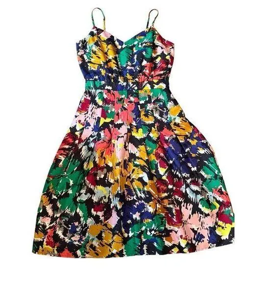 J.Crew Size 2 Brushstroke Silk Floral Abstract Sleeveless Dress 100% silk Excellent preowned condition This dress is a vibrant multi-color floral print sleeveless fit and flare pleated dress with sweetheart neck and gathered waist. Back zip, adjustable spaghetti straps, fully lined. Defined waist with drop pleats. C3 0070 **Ships within 1-2 business days, Friday orders ship Monday** **All preowned items are properly cleaned, sanitized, and stored** ** *Stock photo is for fit reference ONLY!! Please review my photos for color/ shade accuracy!** * Please review all photos of the item and the description before purchasing. Measurements are provided for your review, they are approximate and taken while lying flat.*