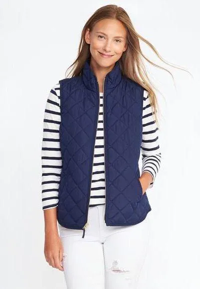 Navy blue quilted vest by Old Navy in good preowned condition. No flaws. Size S Measurements with g... Show more