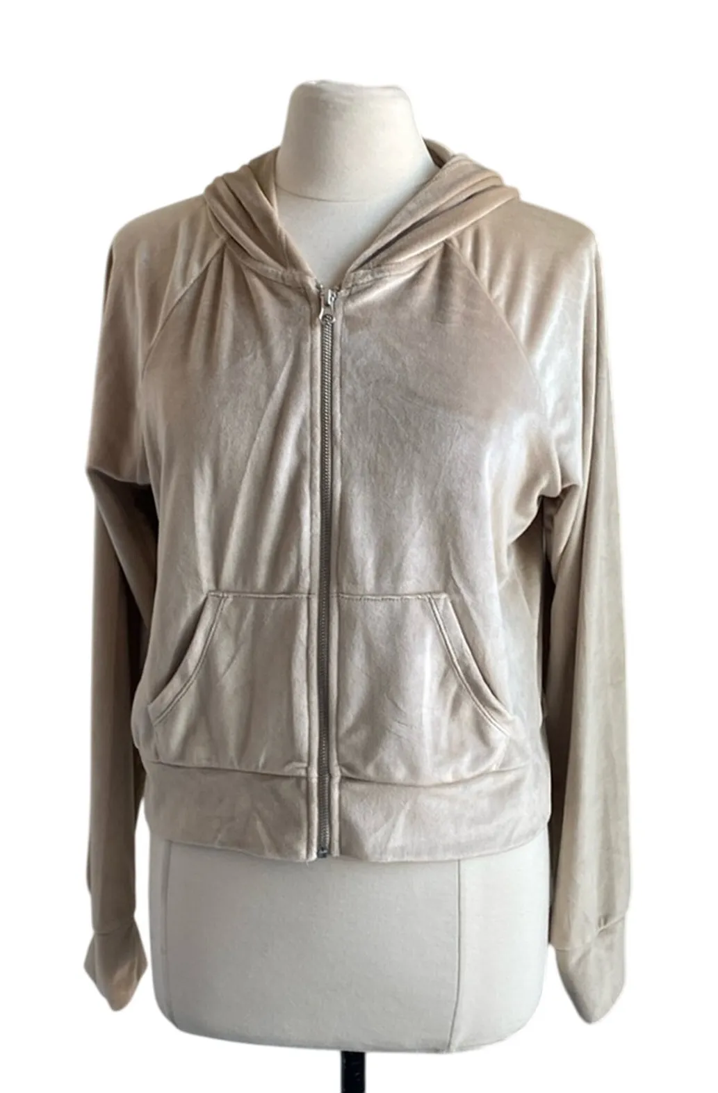 CRAVE FAME Velour Hoodie Womens Sz XL Very gently used - great condition Front pockets Missing hood drawstring 95% Polyester 5% Spandex Tan / Champagne Full body length 20” Across chest 21” Sleeves 24” Full Zip 90s Y2K