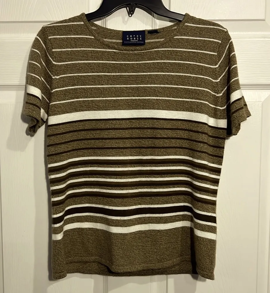 Crazy Horse Women’s striped brown and white short sleeve top - Size M/L - $16 - From Shaunda