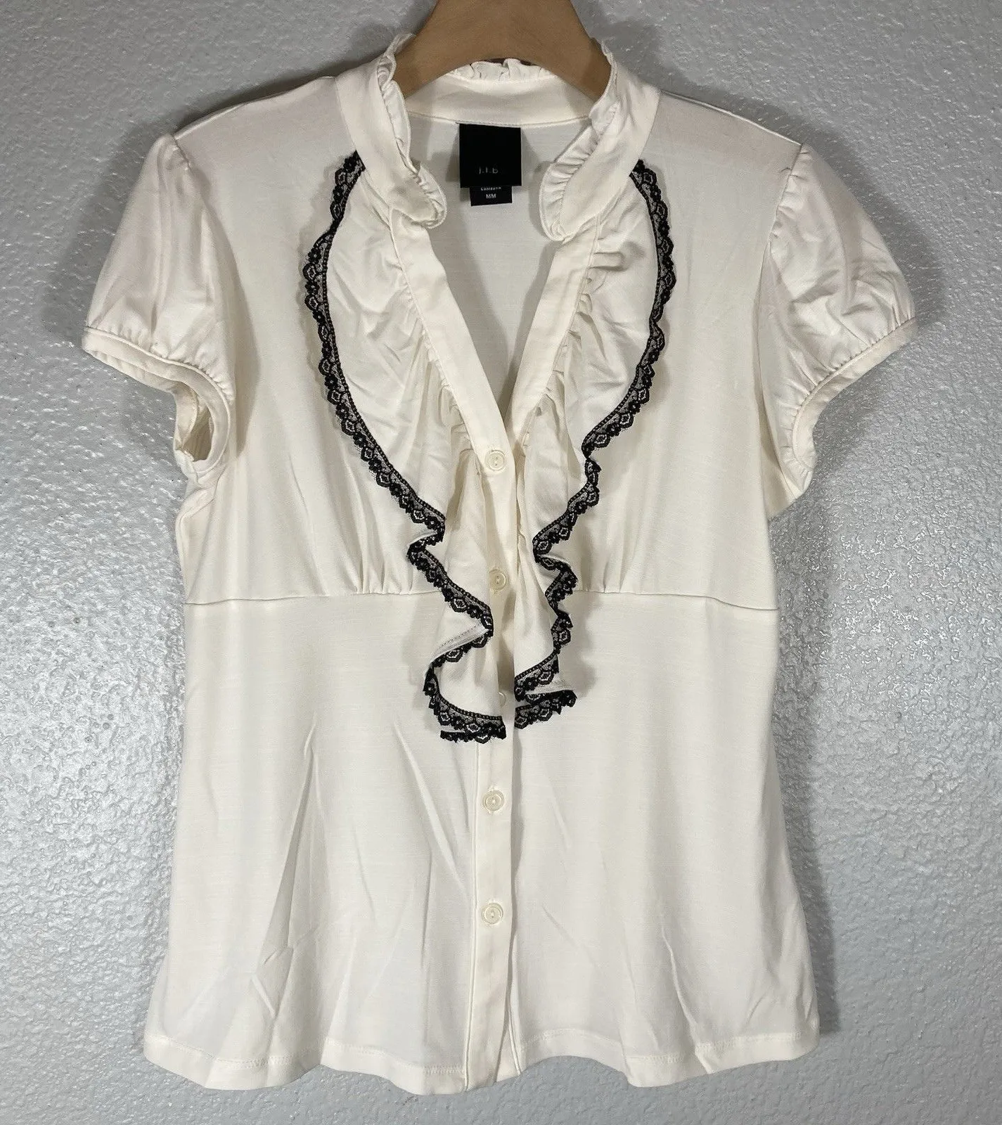 FAST SHIPPING Shoulder 15 in Pit to pit 18 in Sleeve 5 in Length 24.5 in Measurements are approximate lying flat. Ships same to next business day from smoke free home. Thank you for shopping small business. Please check out my other listings and give me a follow. Im always hunting treasures to bring back to life. #coquette #career #quiteluxury #cream #academia