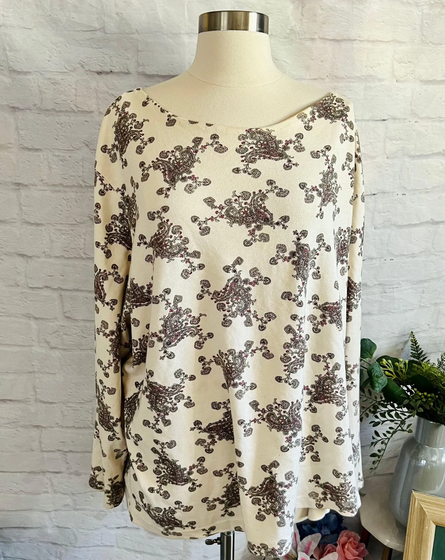 🌷 Item: Blouse 🌷 Brand: Unknown 🌷Size: 4X 🌷Colour: Cream 🌷 Features: Long Sleeves, Paisley... Show more