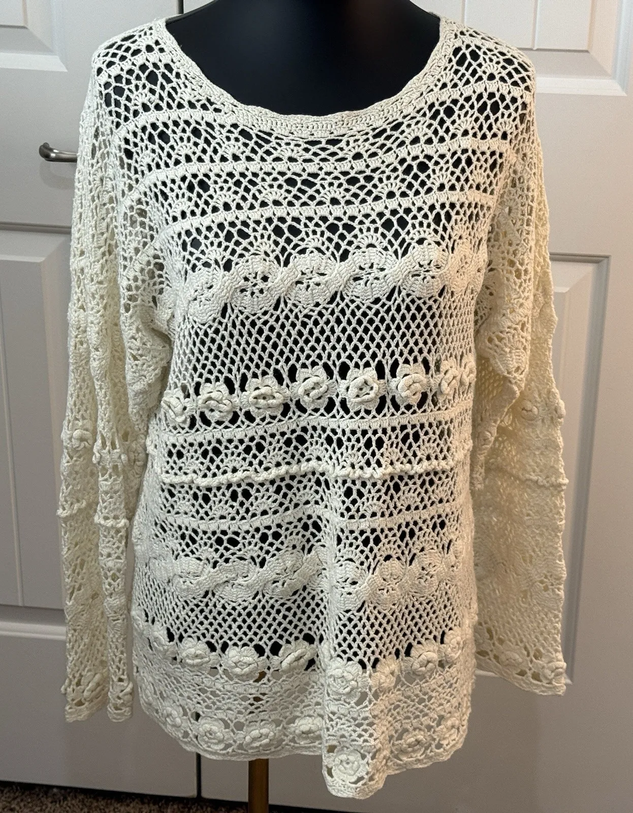 Crochet‎ Lace Scoop Neck Short Sleeve Layering Top Natural Cream Sz Medium - $20 - From Lindsey
