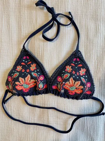 Super cute crocheted bikini top- fits more like a S/M, worn once, purchased less than a year ago, in... Show more